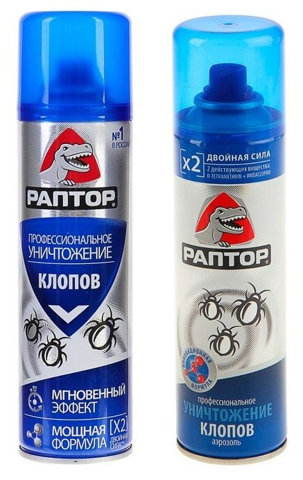 | Отзыв: | Аэрозоль Раптор от клопов помогает, проверено. Только брызгать им надо не одну мягкую мебель, а все щели, где клопы могут прятаться, чтобы избавиться одним скопом от всех. Я брызгала дома все, вплоть до плинтусов и подоконников, клопов вывела полностью, уже второй месяц ни одного не вижу и никто не кусает. |