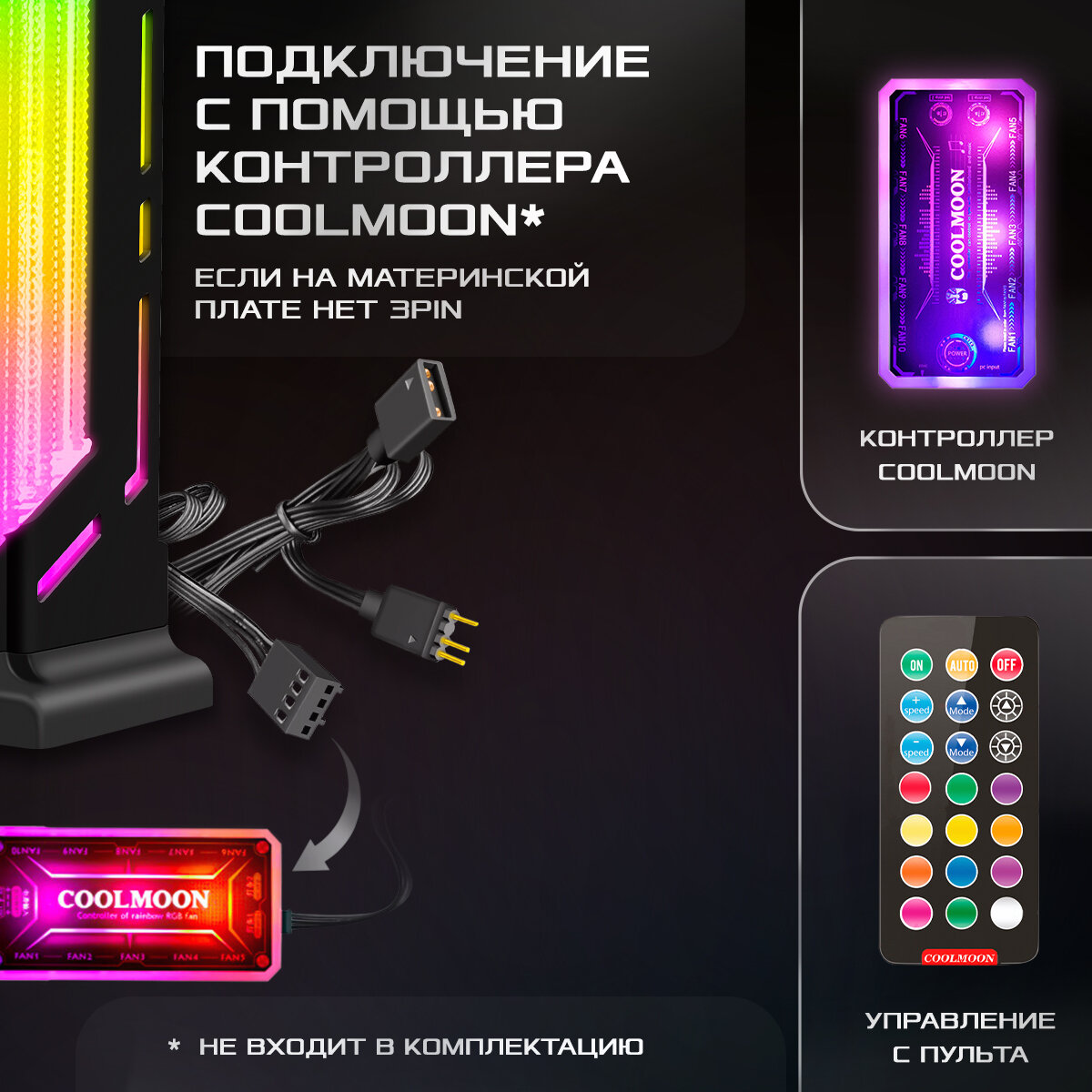 Держатель для видеокарты с подсветкой COOLMOON (вертикальный кронштейн) видеокарты NVIDIA GeForce RTX, GTX, AMD, RX, ASUS, GIGABYTE, Intel, черный