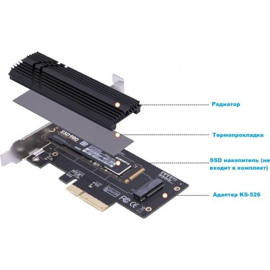 PCI-Express переходник KS-is KS-526 M.2 NVMe SSD 4x PCI-E 3.0 на NGFF(M.2) SSD M key NGFF