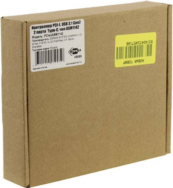 Контроллер PCI-E на USB 3.2 Gen2, Type A+ Type C, чип ASM1142, модель PCIeU11Gen2, Espada
