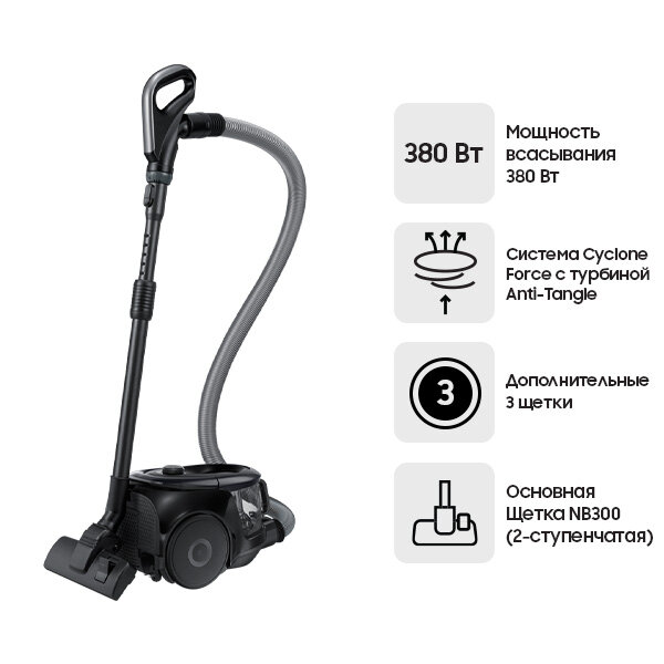 Samsung VC18M21D0VG Пылесос, циклонный фильтр, 1800 Вт, чёрный титан