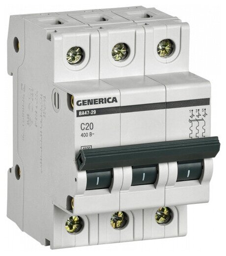 Выключатель автоматический модульный 3п C 20А 4.5кА ВА47-29 GENERICA IEK MVA25-3-020-C (1 шт.)