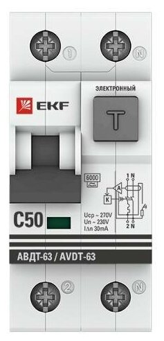 Дифференциальный автоматический выключатель EKF PROxima АВДТ-63 50А, С, 30мА, тип A, 6кА, электрронный