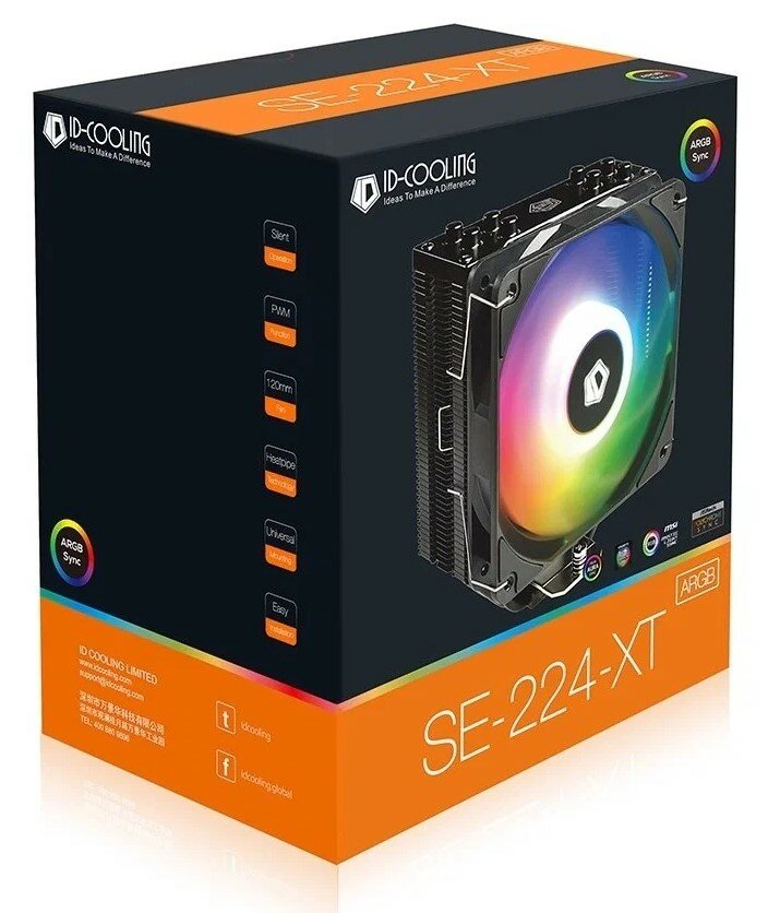 Кулер для процессора ID-Cooling SE-224-XTS ARGB LGA1700/1200/115X/AM5/AM4, TDP 220W, PWM, ARGB FAN 120mm, RET