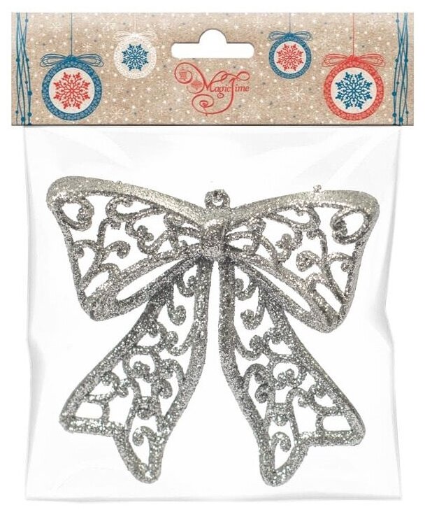 Новогоднее подвесное елочное украшение MAGIC TIME Бантик серый 77928 Новый год Для елки интересное: