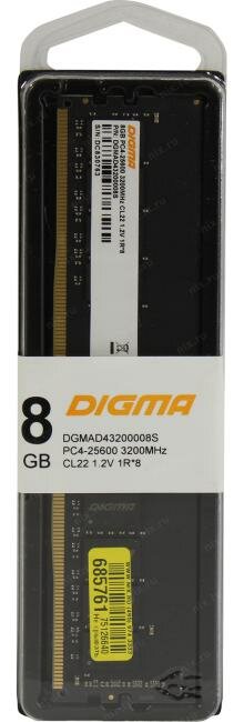 Оперативная память Digma DGMAD43200008S DDR4 - 1x 8ГБ 3200МГц, DIMM, Ret