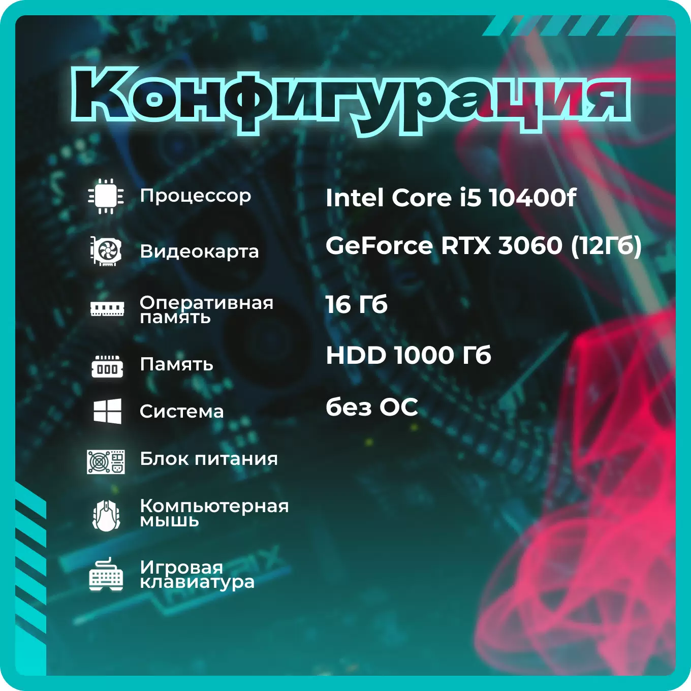 ПК TopComp AK 121956885 (Intel Core i5 10400F 2.9 ГГц, RAM 16 Гб, 1000 Гб HDD, NVIDIA GeForce RTX 3060 12 Гб, Без ОС) интересное: