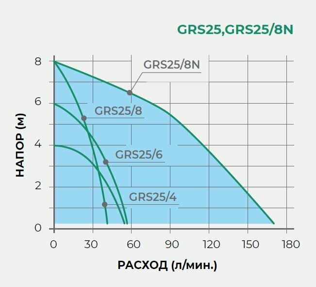 Циркуляционный насос GRS25/8 (Pmax-100Вт,Hmax-8м,Qmax-40л/мин,180мм,с гайками и кабелем)PUMPMAN
