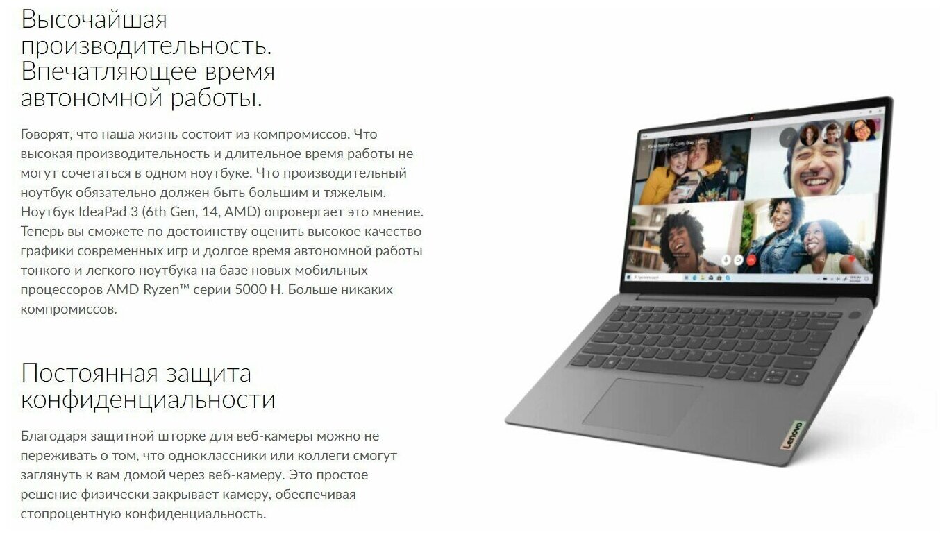 Ноутбук Lenovo IdeaPad 3 14ALC6 82KT00RRRU (14", Ryzen 5 5500U, 12Gb/ SSD 512Gb, Radeon Graphics) Серый интересное: