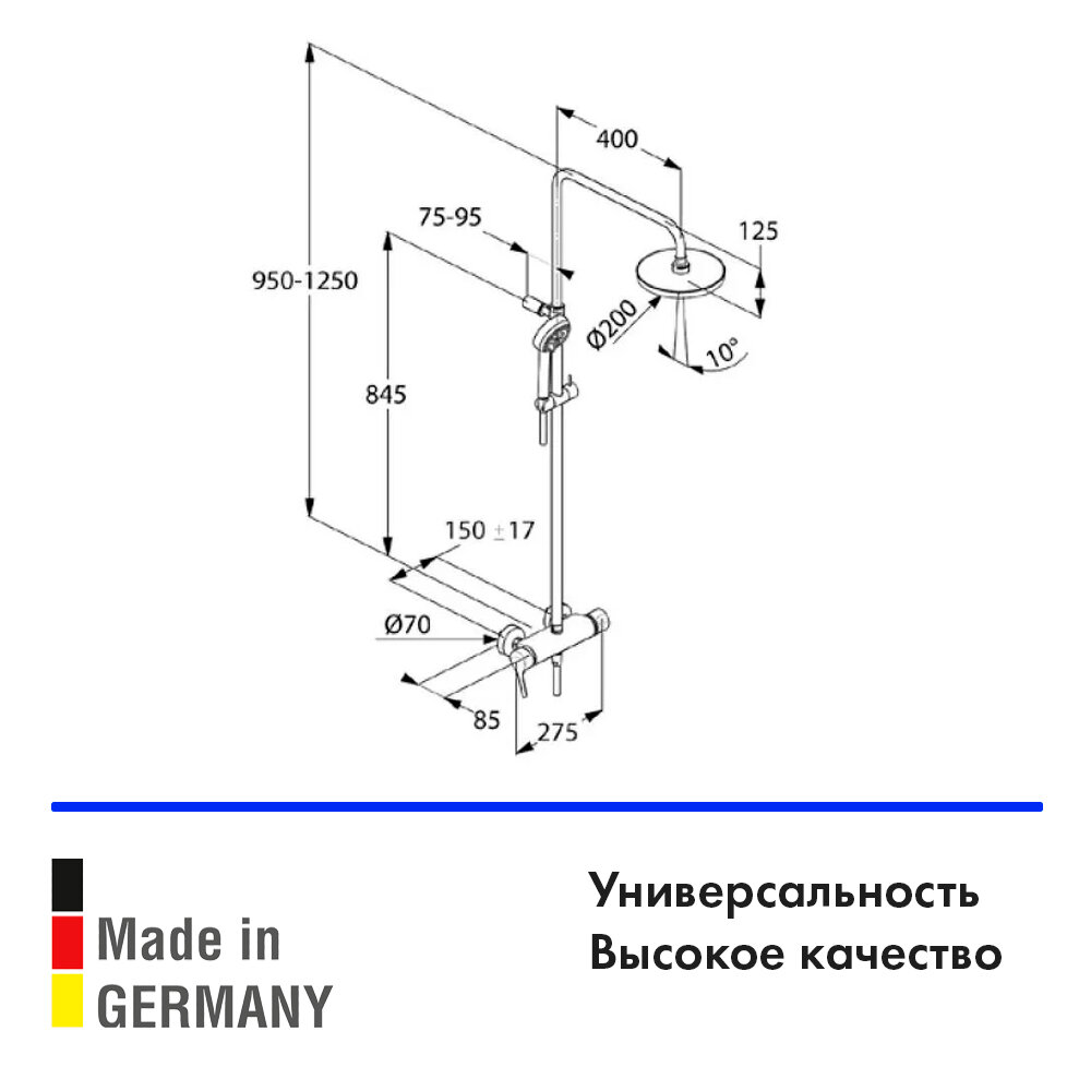 | Дополнительная информация | диаметр верхнего душа: 200 мм |