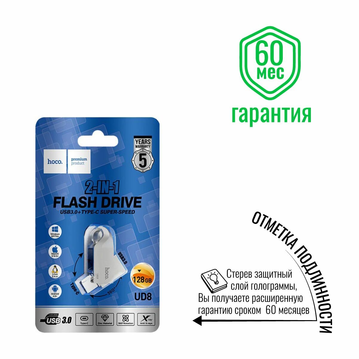 Купить USB флеш-накопитель HOCO UD8 Smart, USB 3.0/Type-C, 128GB, серебристый