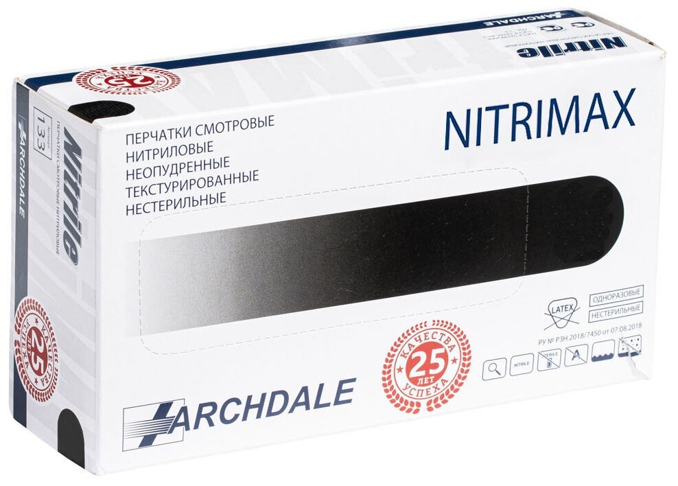 Перчатки Archdale NitriMAX, 50 пар, размер: XS, цвет: черный, 1 уп.