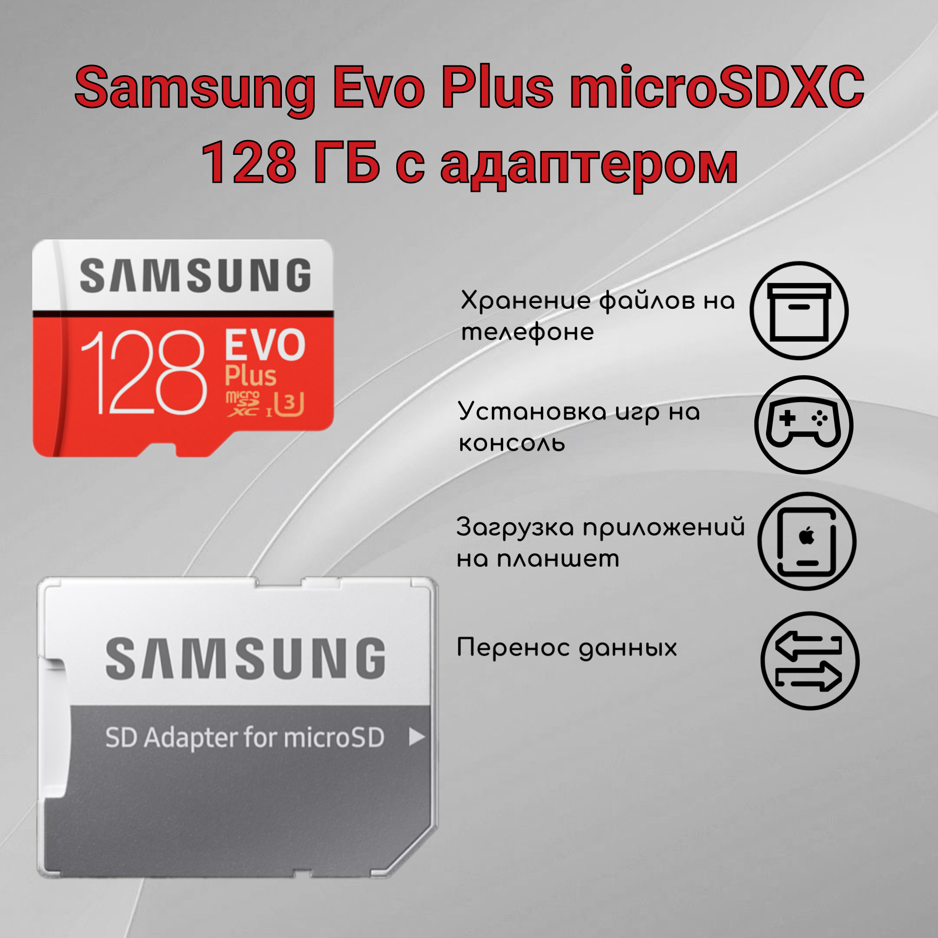 Купить Карта памяти Samsung microSDXC 128GB EVO PLUS microSDXC Class 10 UHS-I, U3 + SD адаптер MB-MC128KA/APC