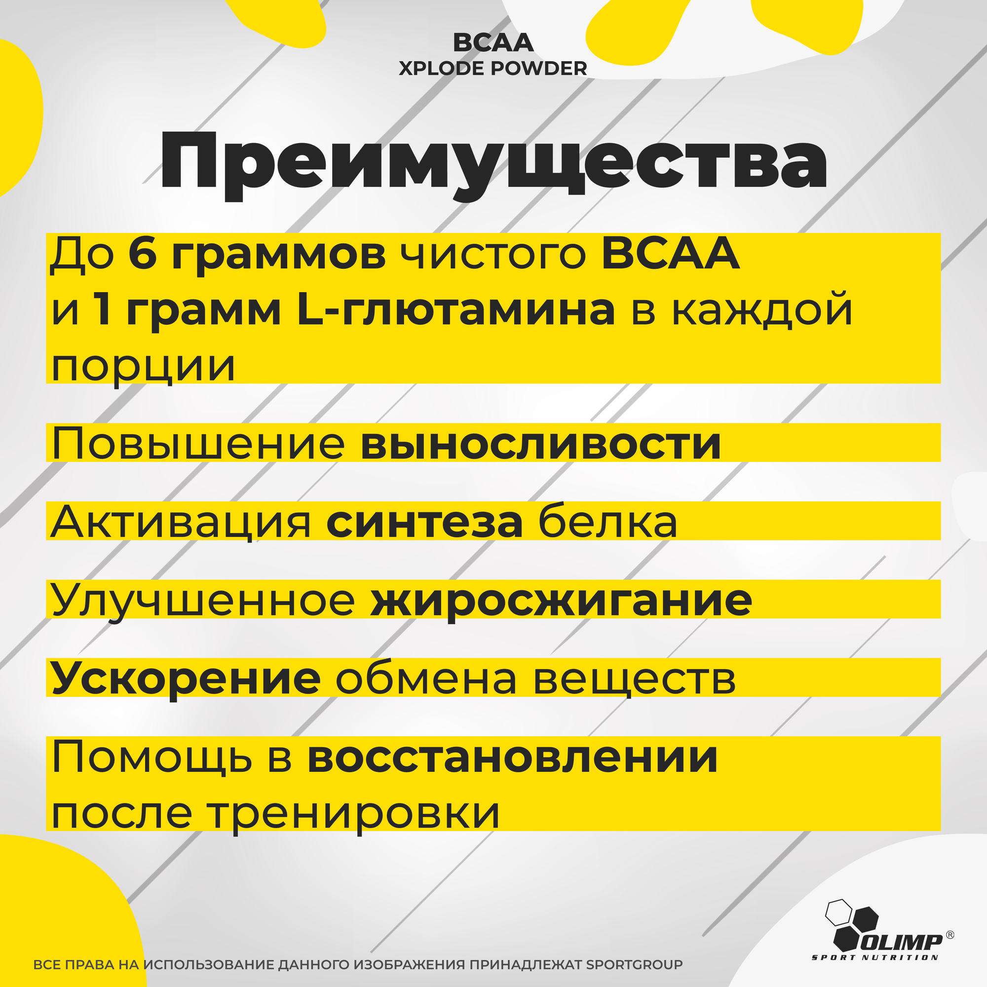 OLIMP AMINO BCAA XPLODE POWDER Аминокислоты 500 гр Клубника