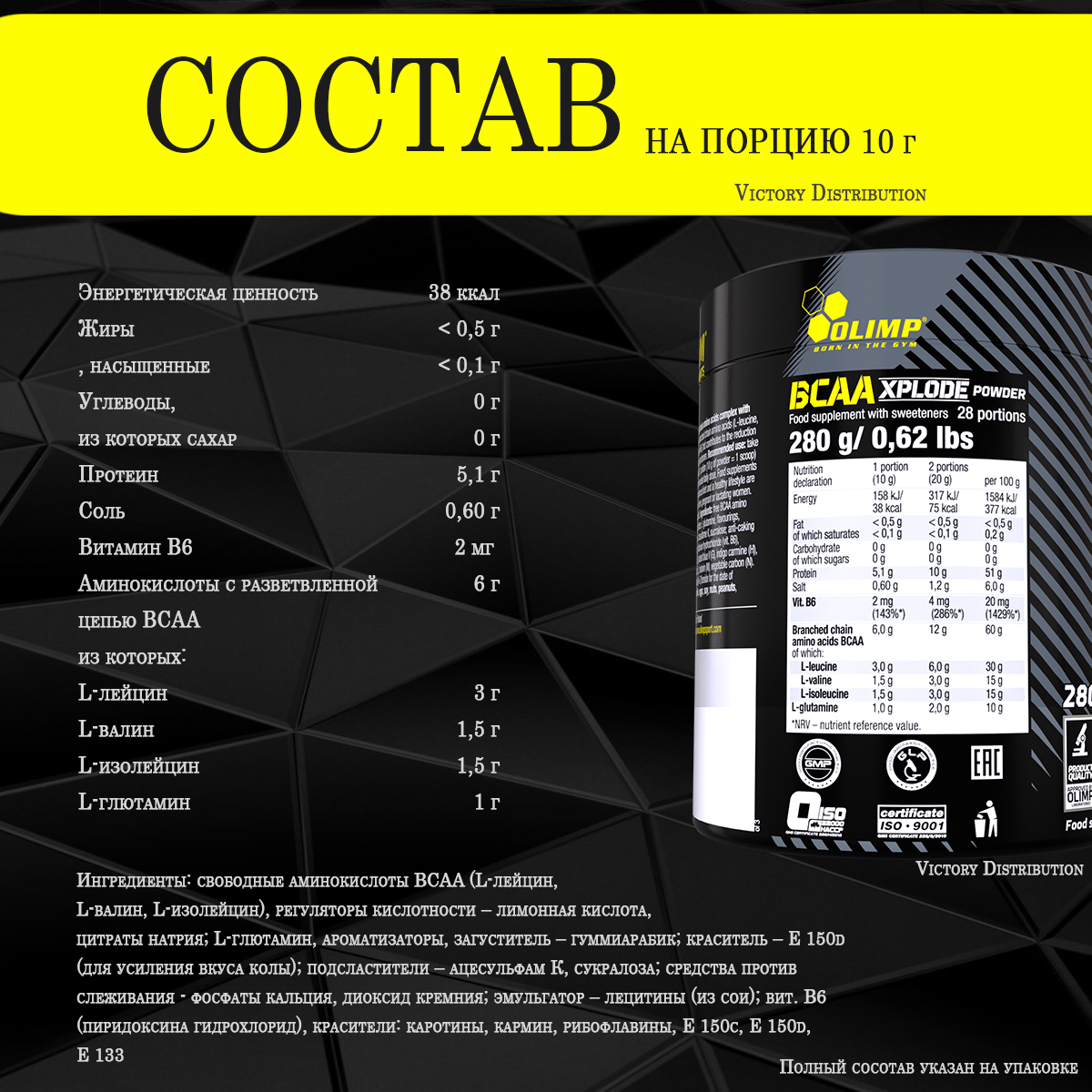 OLIMP AMINO BCAA XPLODE POWDER Аминокислоты 1000 гр Кола