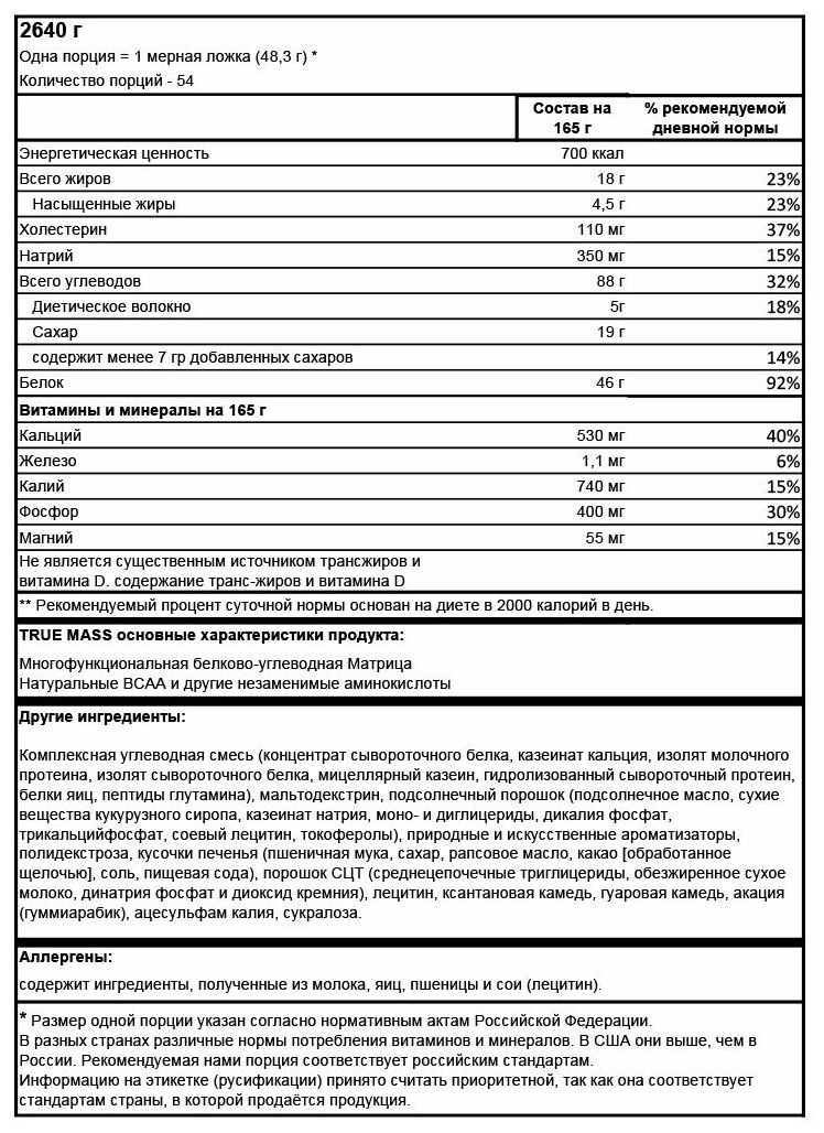 TRUE MASS 2640 gr, 16 порции(й), печенье-крем