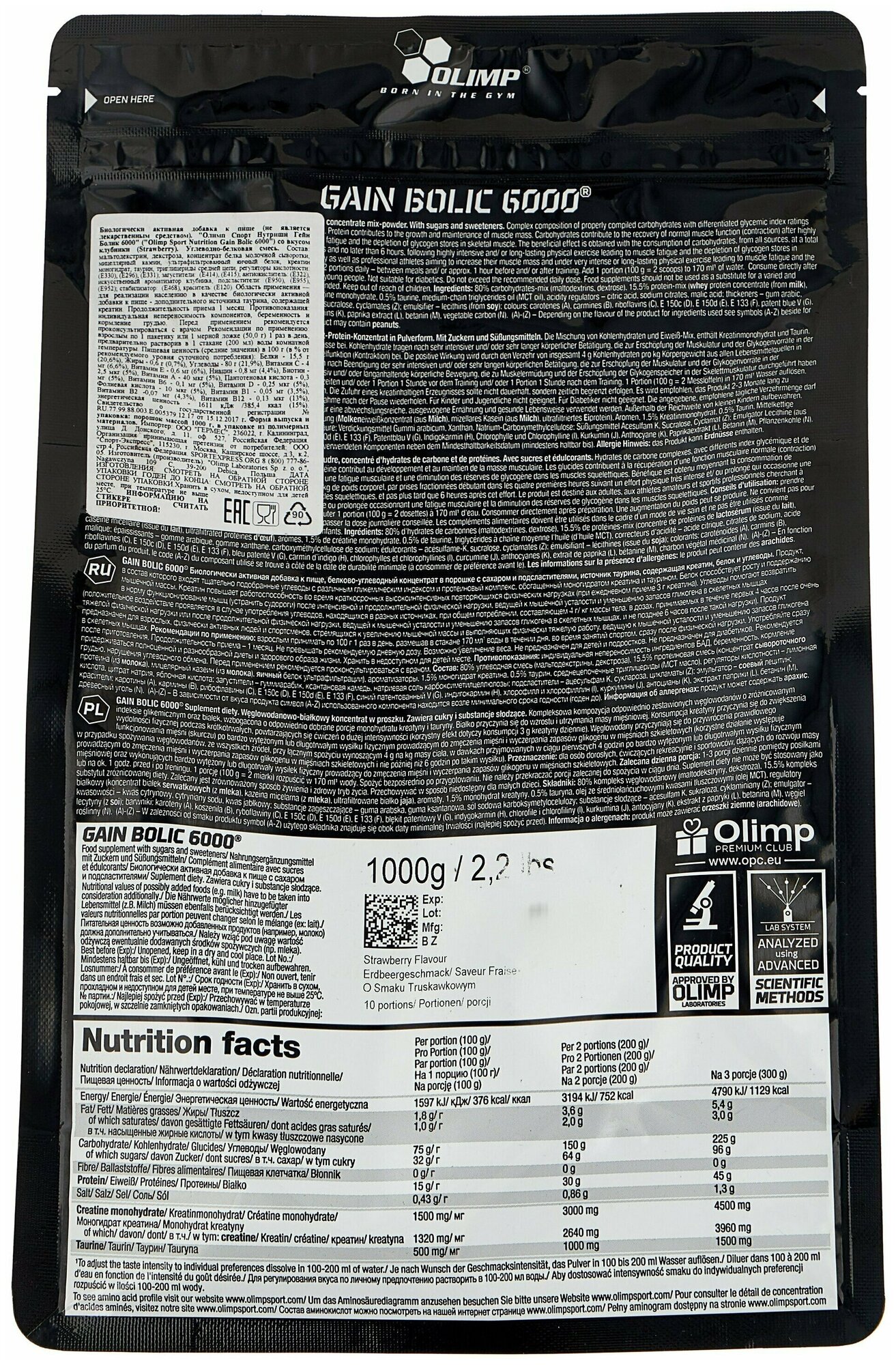 клубника Olimp Gain Bolic 6000 1000 гр - 2,2lb (Olimp)