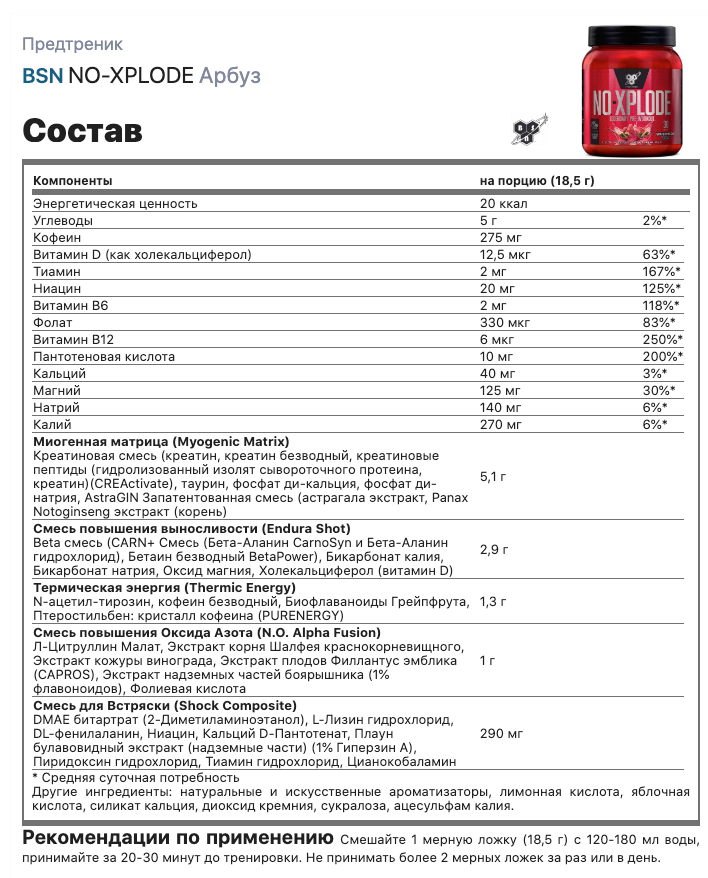 СохранитьПредтреник BSN NO-XPLODE 3.0 New 555 г, Арбуз интересное: