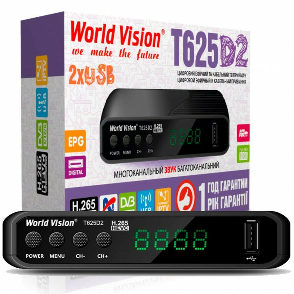 Купить Цифровой телевизионный приемник World Vision T625D2 (T2+C, пластик, дисплей, кнопки, встроенный БП, IPTV, DD)