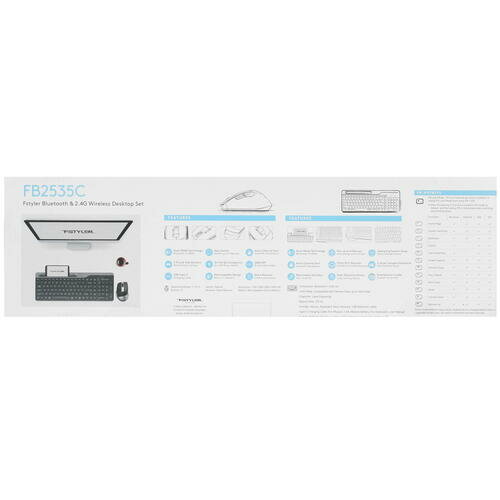 Клавиатура и мышь: Беспроводной набор A4Tech Fstyler FB2535C, Bluetooth 5,0 + радио 2.4 ГГц, slim-дизайн, Li-on 300 mh