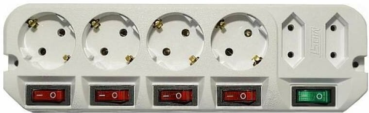 Удлинитель с индивидуальными выключателями MOST A16, 6 розеток, 16А 3500 Вт белый 5 м