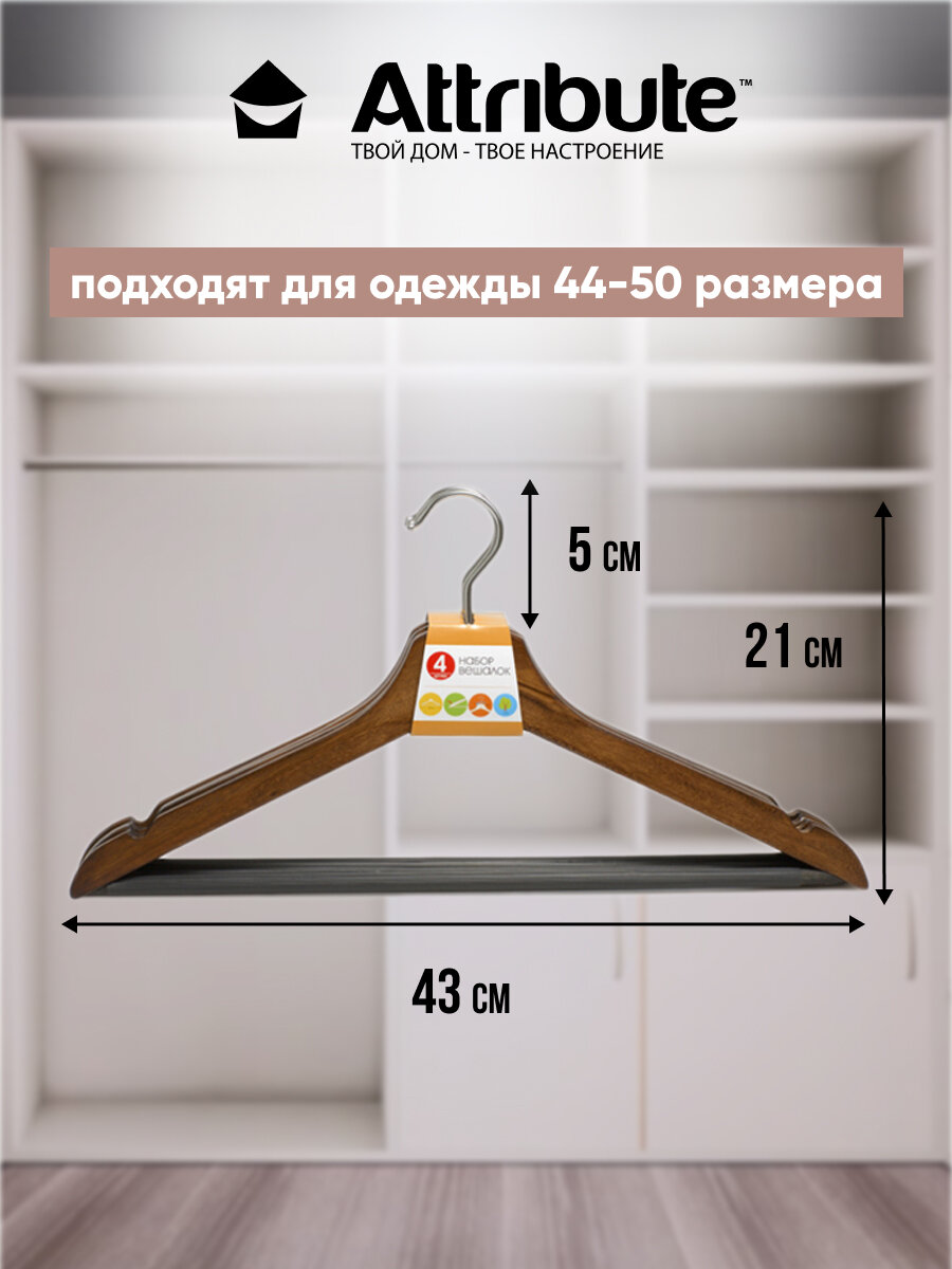 Набор вешалок универсальных WALNUT 44см 4шт,ATTRIBUTE HANGER интересное: