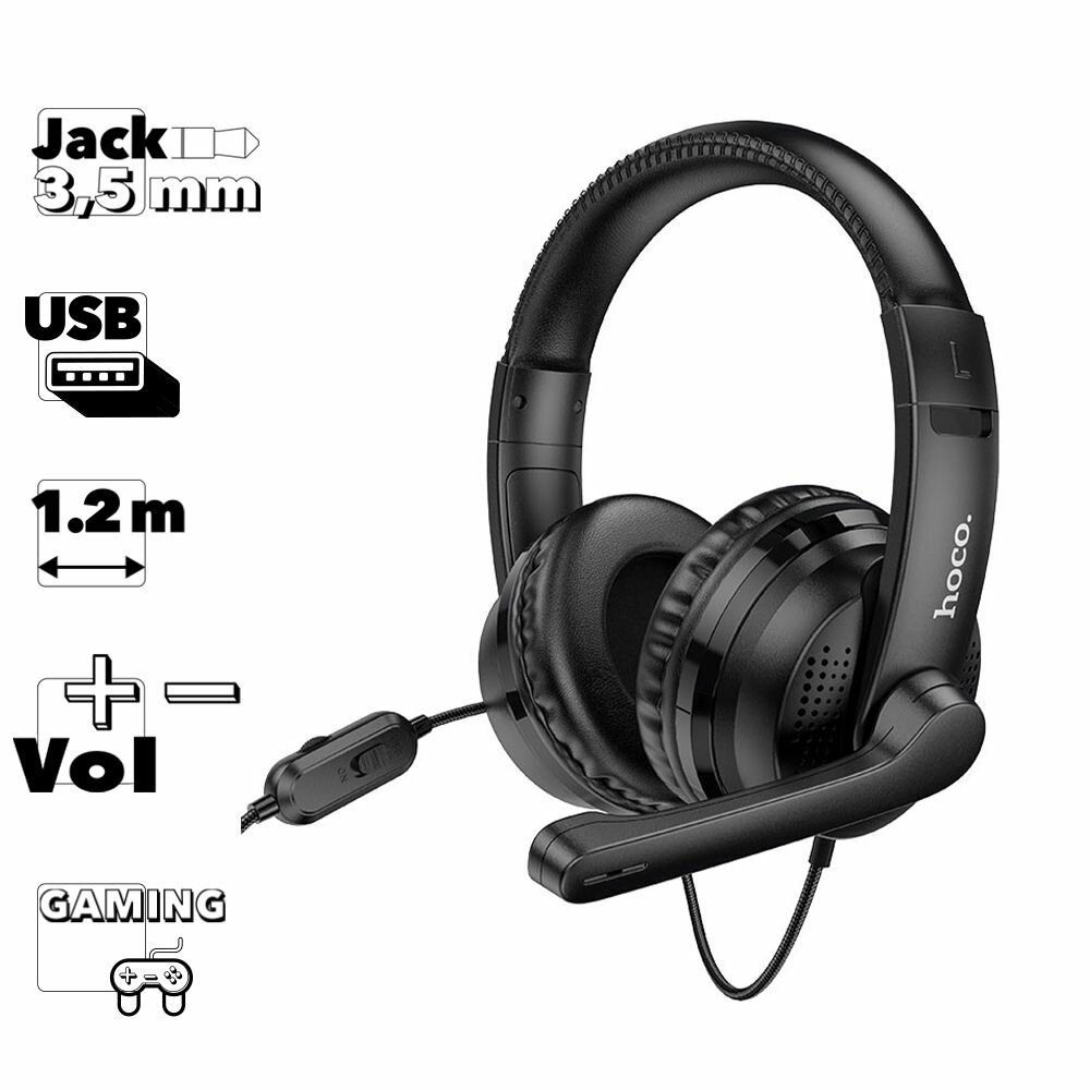 Игровая гарнитура Hoco W103 Magic tour со всенаправленным микрофоном, 3.5мм, кабель 1.2м, черная