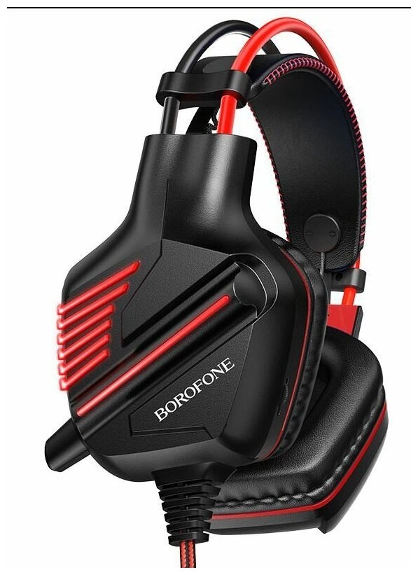 Наушники полноразмерные Borofone BO101, Gaming, микрофон, подсветка, кабель 2.0м, цвет: красный интересное: