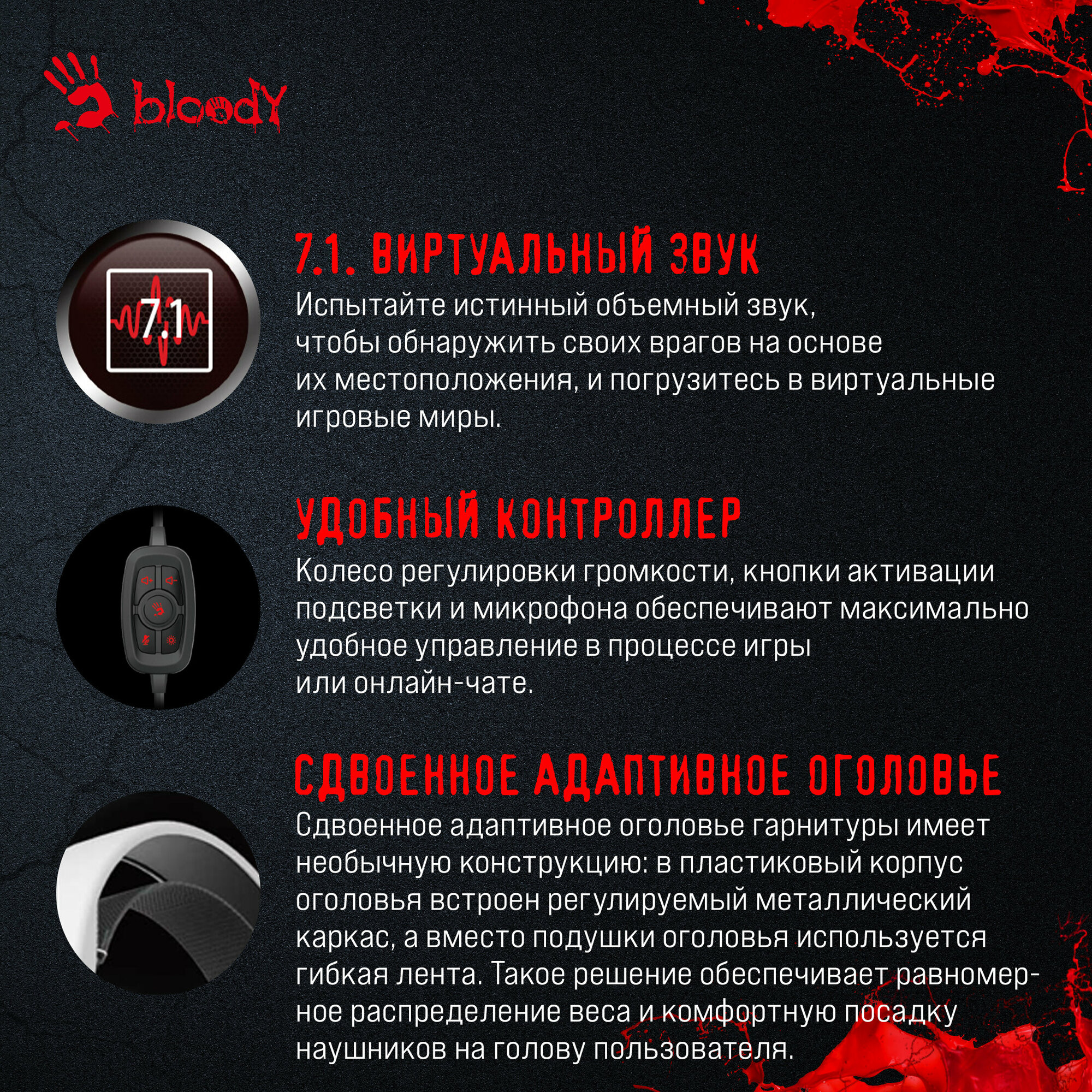 Наушники с микрофоном A4Tech Bloody G535 черный/белый 2м мониторные USB (G535) интересное:
