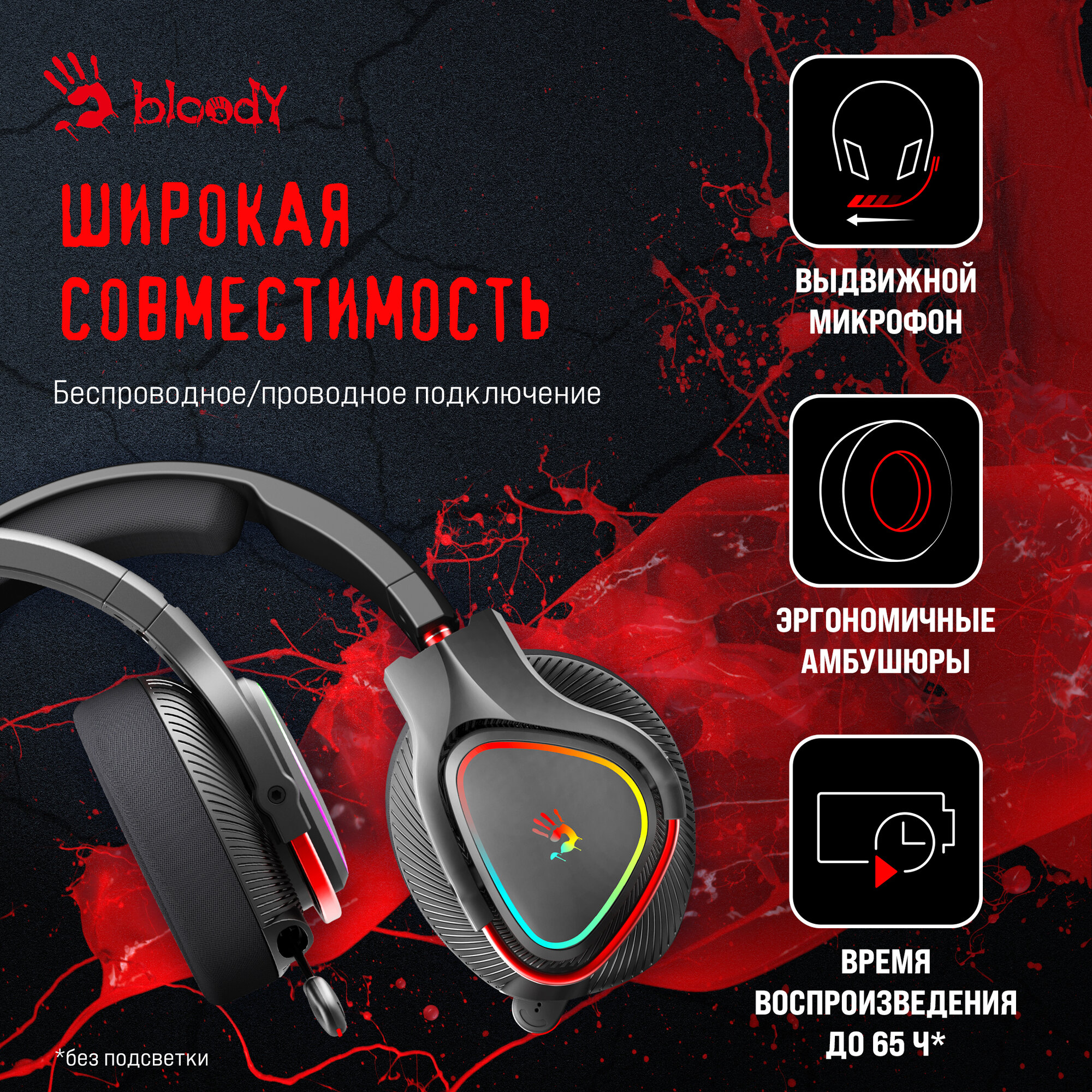 Наушники с микрофоном A4Tech Bloody MR710 черный, крепление оголовье, беспроводные bluetooth (MR710 BLACK) интересное: