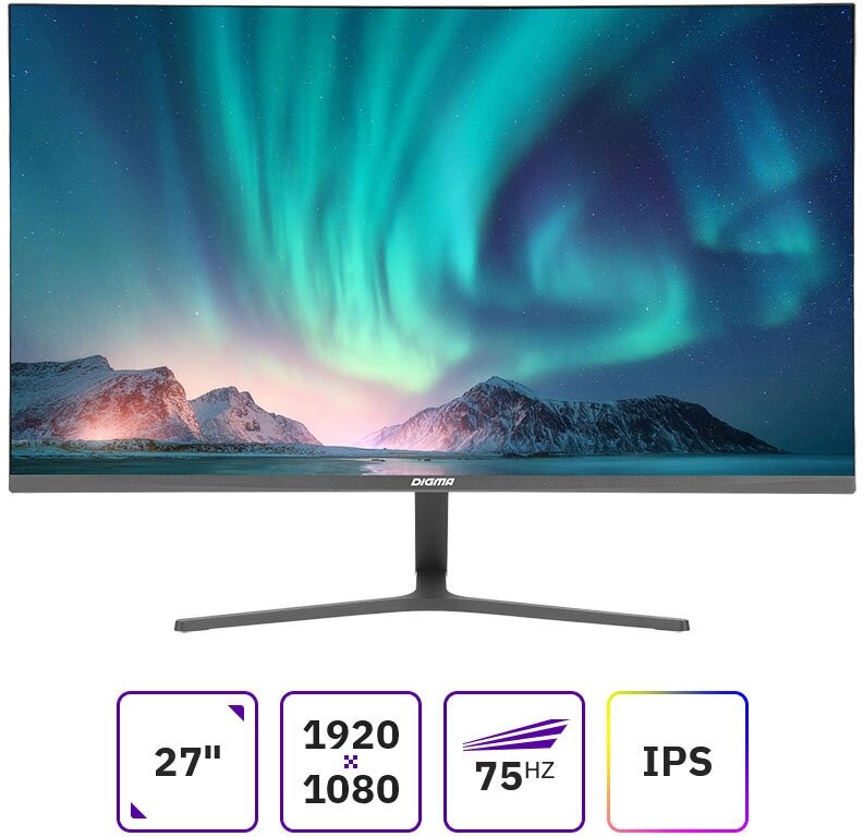 Монитор 27" Digma DM-MONB2703 темно-серый, 1920x1080, 16:9, IPS, 75 Гц, 250 кд/м2, GTG 5ms, AMD FreeSync, 1000:1, HDMI, DP, VGA (D-SUB), 3.5 мм jack