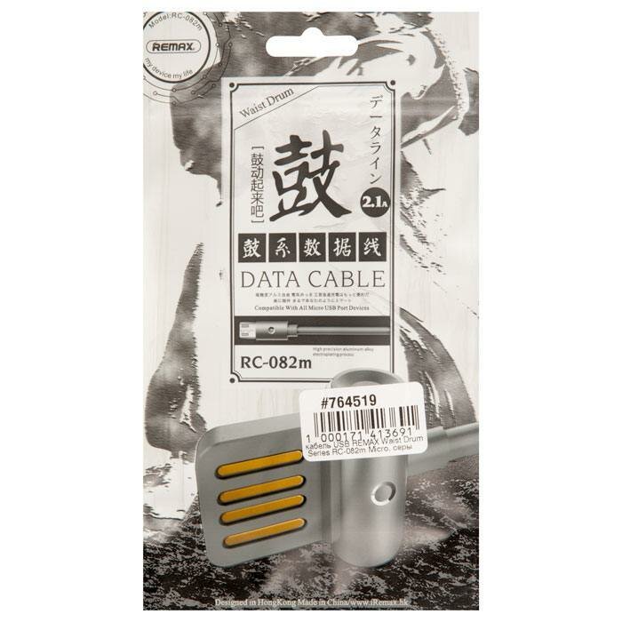 Ниже Вы можете прочитать отзывы на Кабель зарядки и синхронизации данных USB REMAX RC-082m Waist Drum Series для Micro USB, 2.1A, длина 1.0м, серый, RC-082m, ознакомится с подробными характеристиками, посмотреть интересные обзоры и фотографии на Кабель зарядки и синхронизации данных USB REMAX RC-082m Waist Drum Series для Micro USB, 2.1A, длина 1.0м, серый, RC-082m.