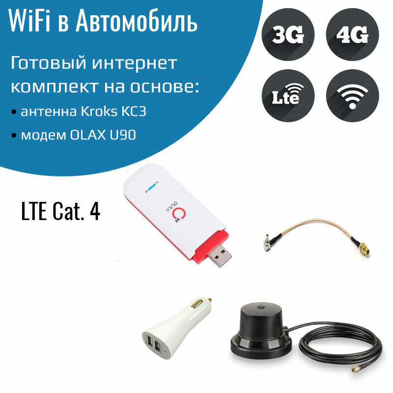 Автомобильный комплект WiFi 3G/4G/LTE модем для автомобиля OLAX U90h с антенной KC3