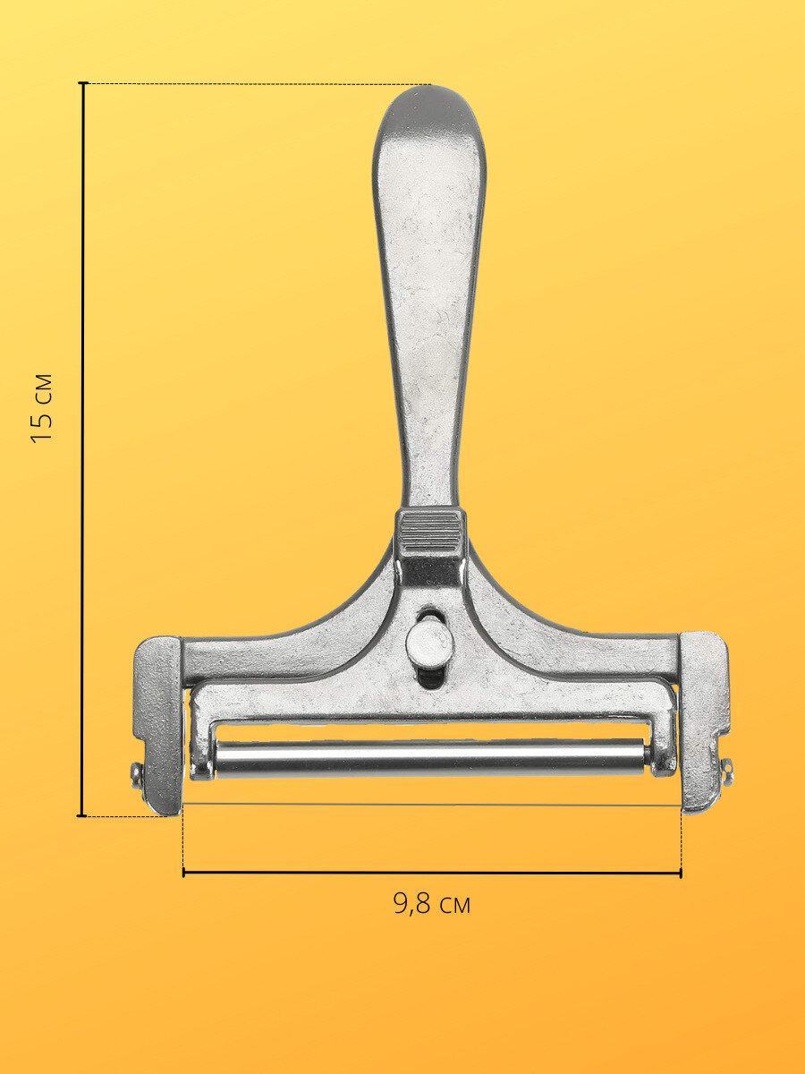 | Плюсы: | Достаточно широкий - пользуюсь для сыра Arla Natura в цилиндрической упаковке. Ширина Чуть меньше диаметра на пару-тройку мм, но не критично. Шире сырорезки не находил пока. |