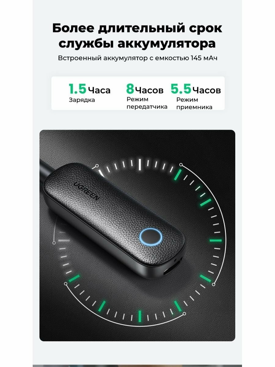 Адаптер Bluetooth приемник/передатчик UGREEN CM403 (80893) Bluetooth Receiver&Transmitter. Цвет: черный