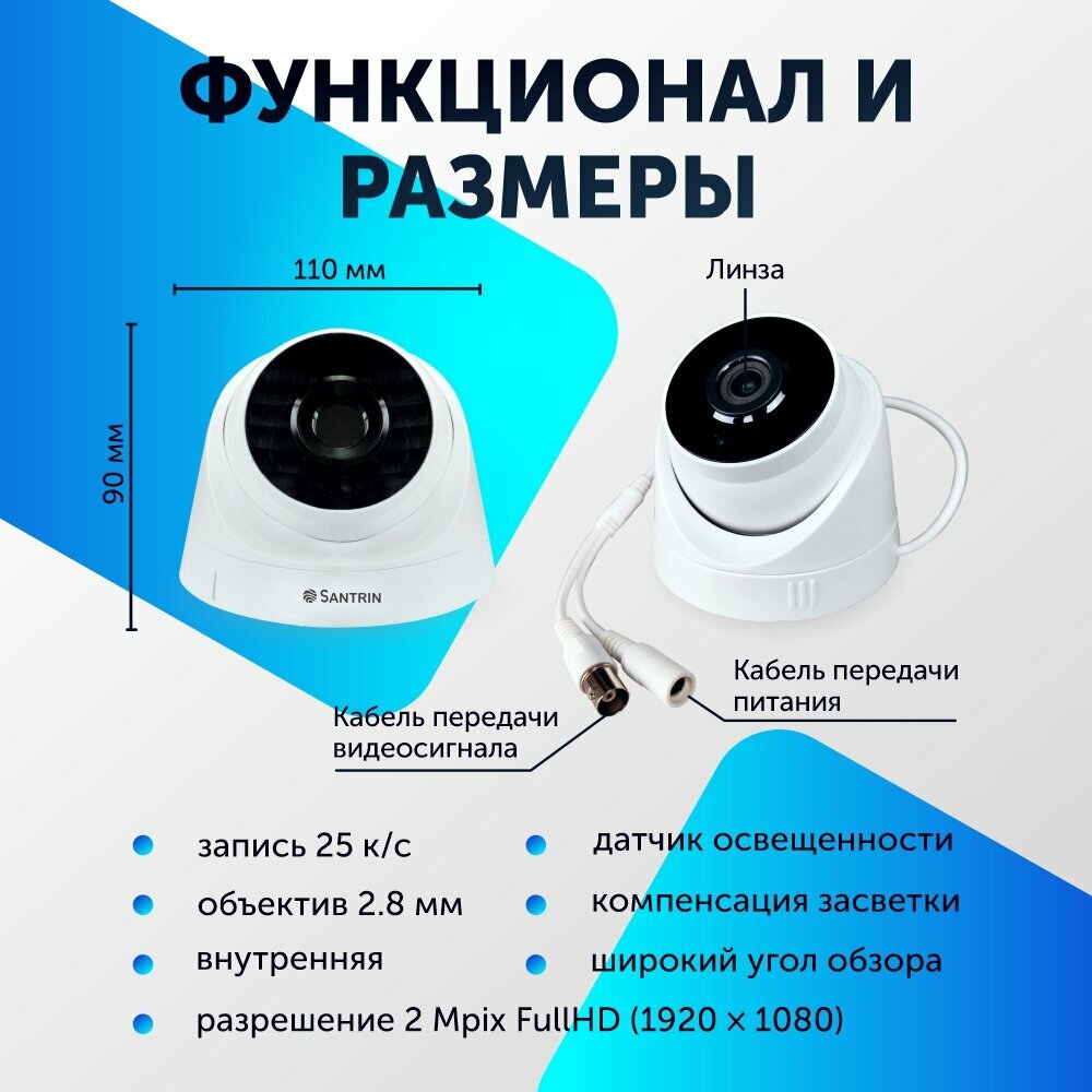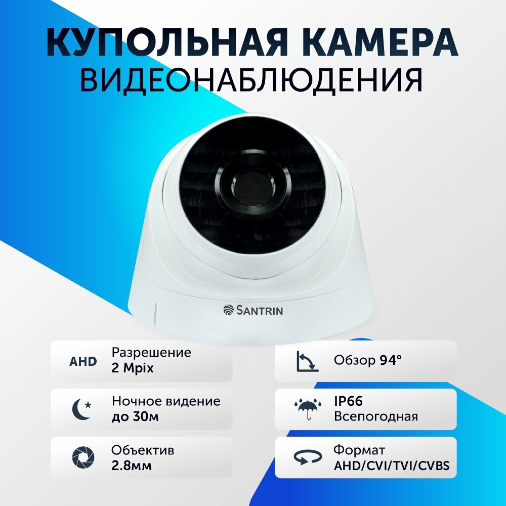Камера видеонаблюдения купольная 2 Mpix. AHD TVI CVI CVBS камера 2.8 mm интересное: