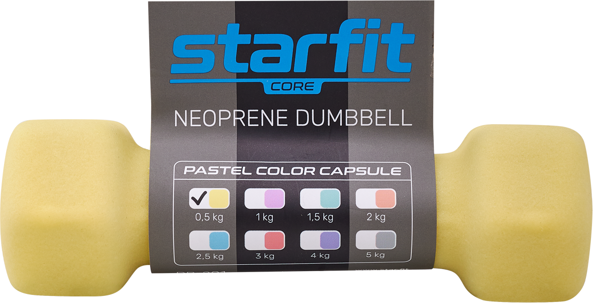 Гантель неопреновая DB-201 0,5 кг, желтый пастельный, Starfit