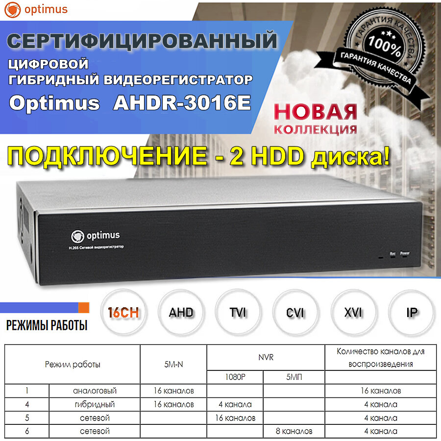 Цифровой гибридный видеорегистратор Optimus AHDR-3016E_V.1