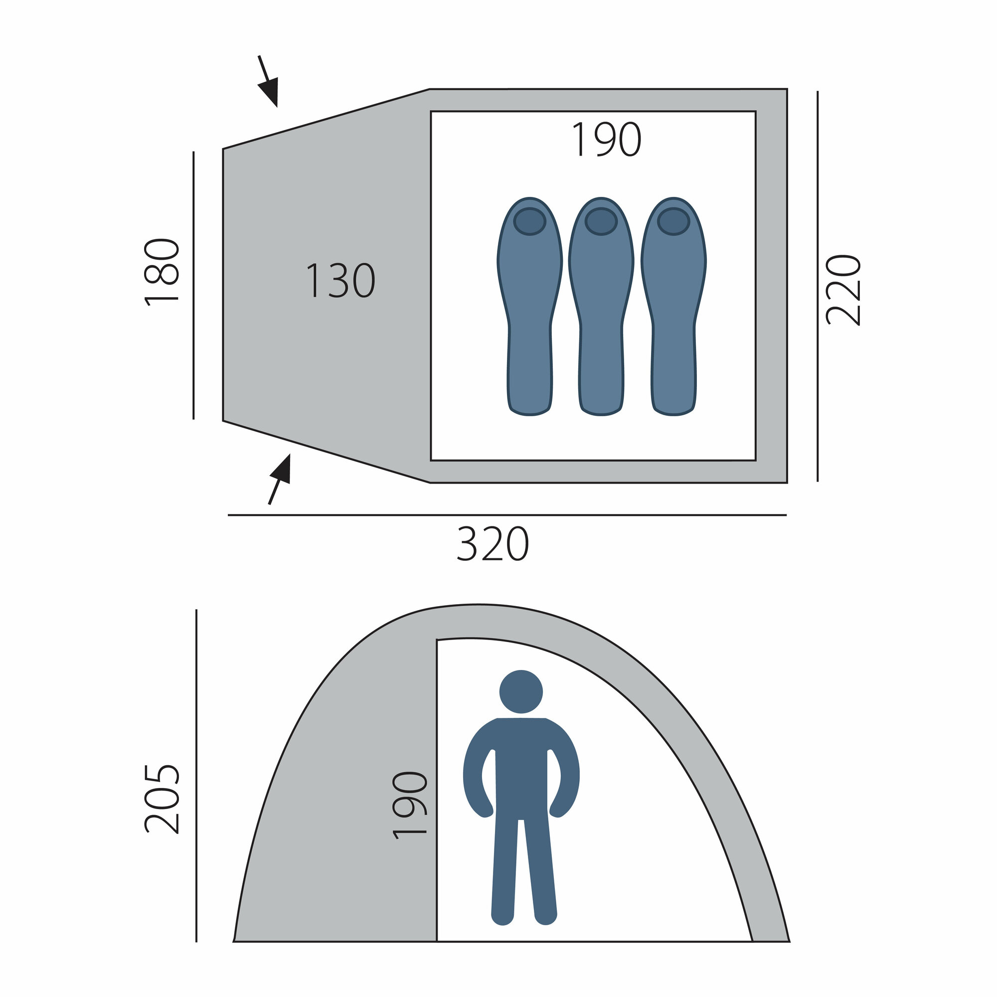 | Длина внешней палатки | 320 см |