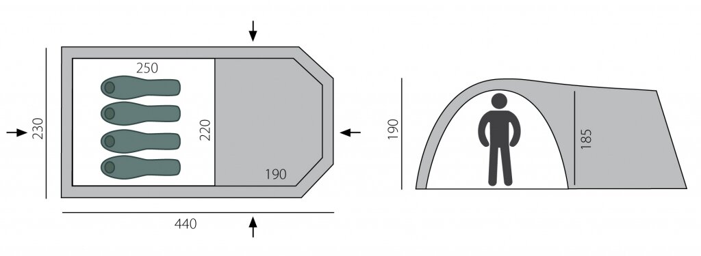 | Длина внешней палатки | 440 см |