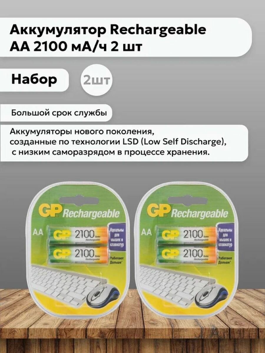 Аккумулятор GP Rechargeable 210AAHC-2DECRC2, типоразмер АА, 2100 мАч, 1,2 В, 2 шт