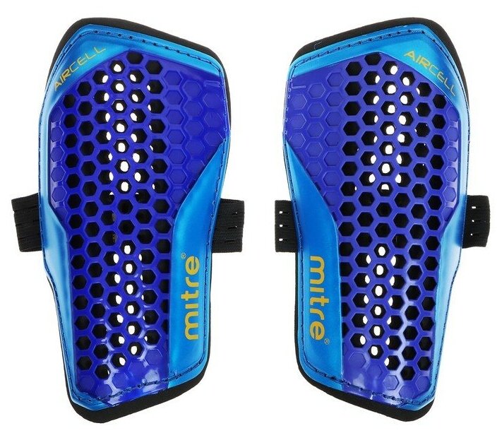 Щитки футбольные MITRE Aircell Carbon Slip, арт. S70004BCY, размер L, без голеностопа, 1 липучка, подкладка из ЭВА, пластик, голубой-синий