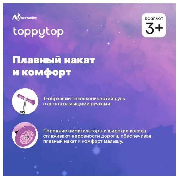 Трехколесный детский самокат с яркой LED-подсветкой Nonstopika Toppytop, розовый интересное: