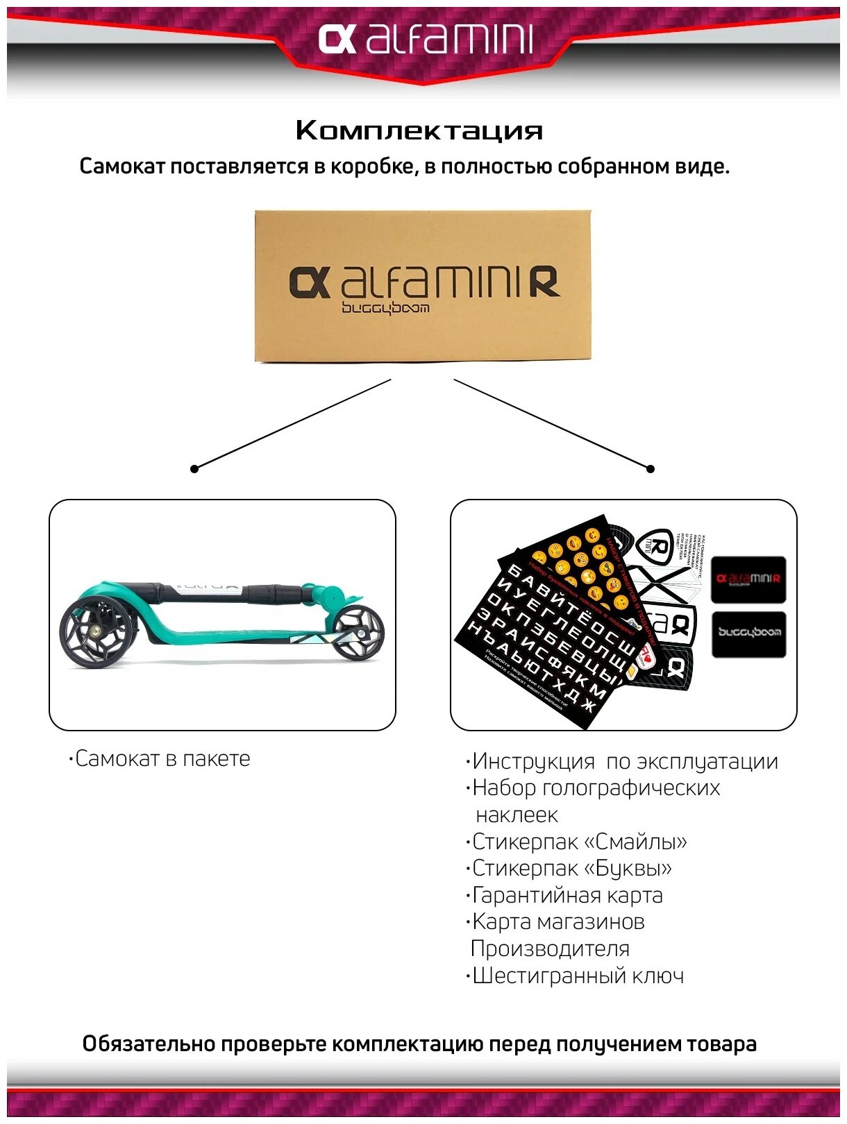 Самокат детский трехколесный с наклейками Alfa Mini R от Buggy Boom