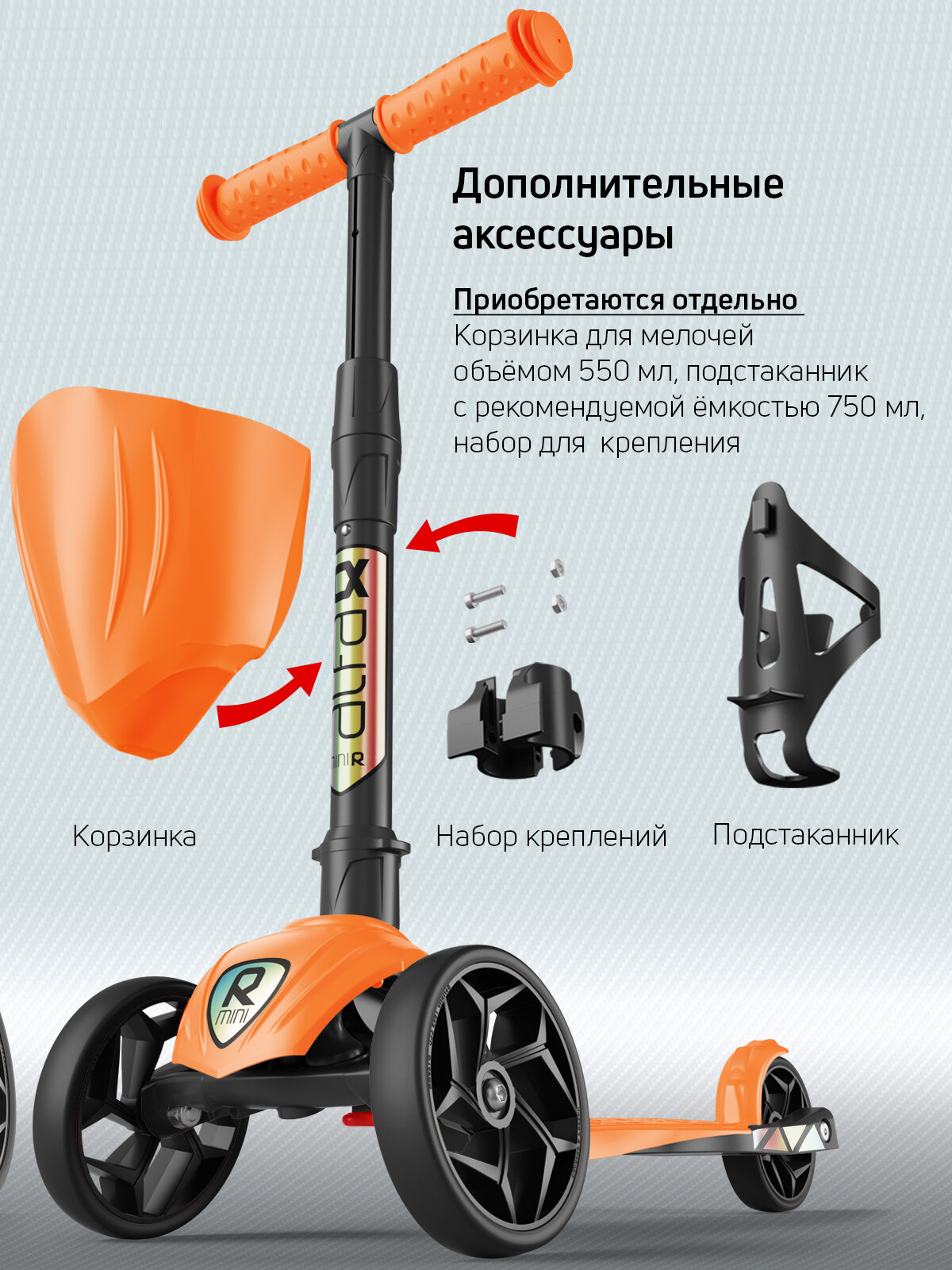 СохранитьСамокат, самокат трехколесный детский, с цветными ручками Buggy Boom Alfa Mini, морковный интересное: