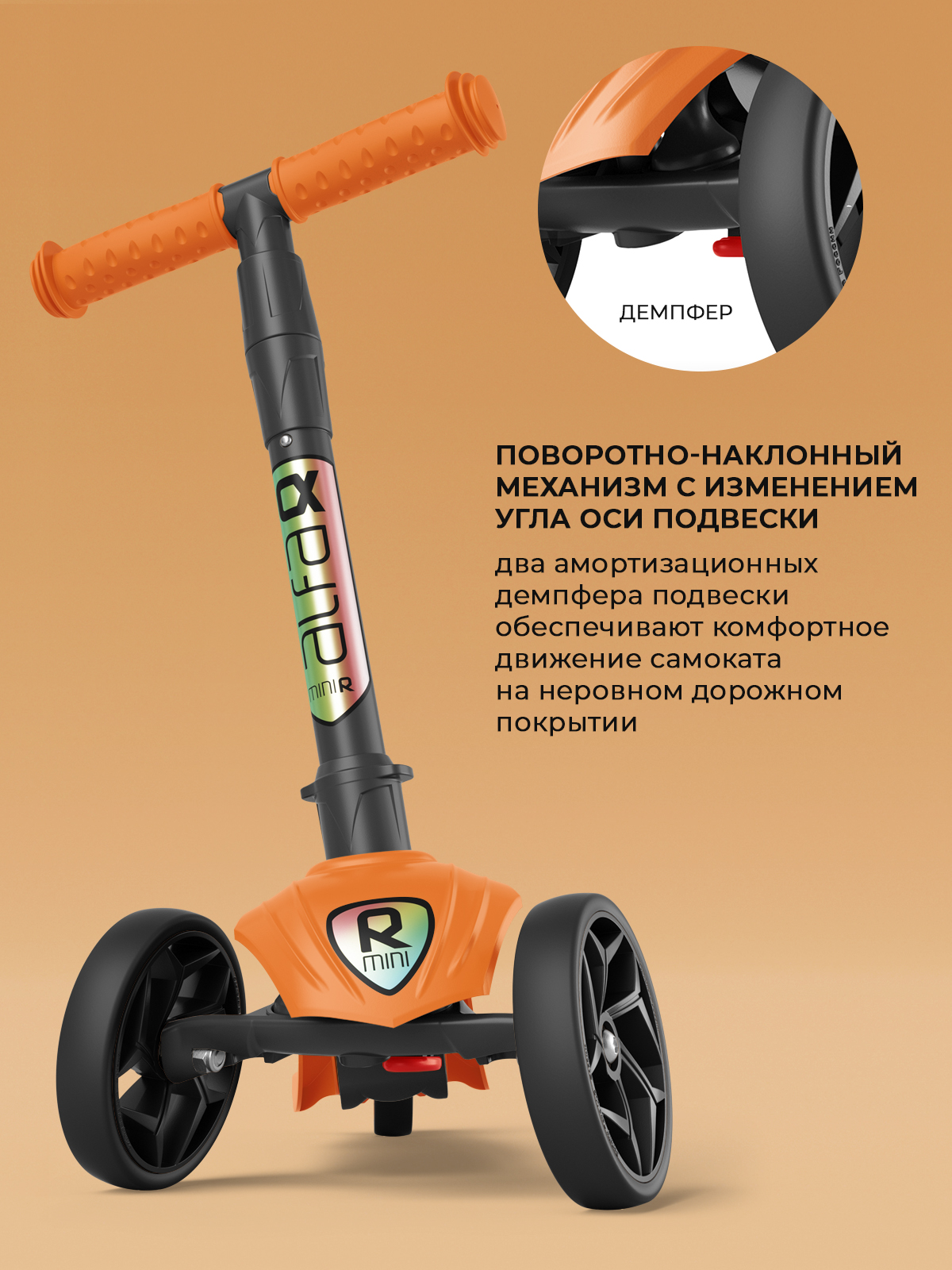 Самокат трехколесный детский Buggy Boom Alfa Mini R, морковный (004-2053)