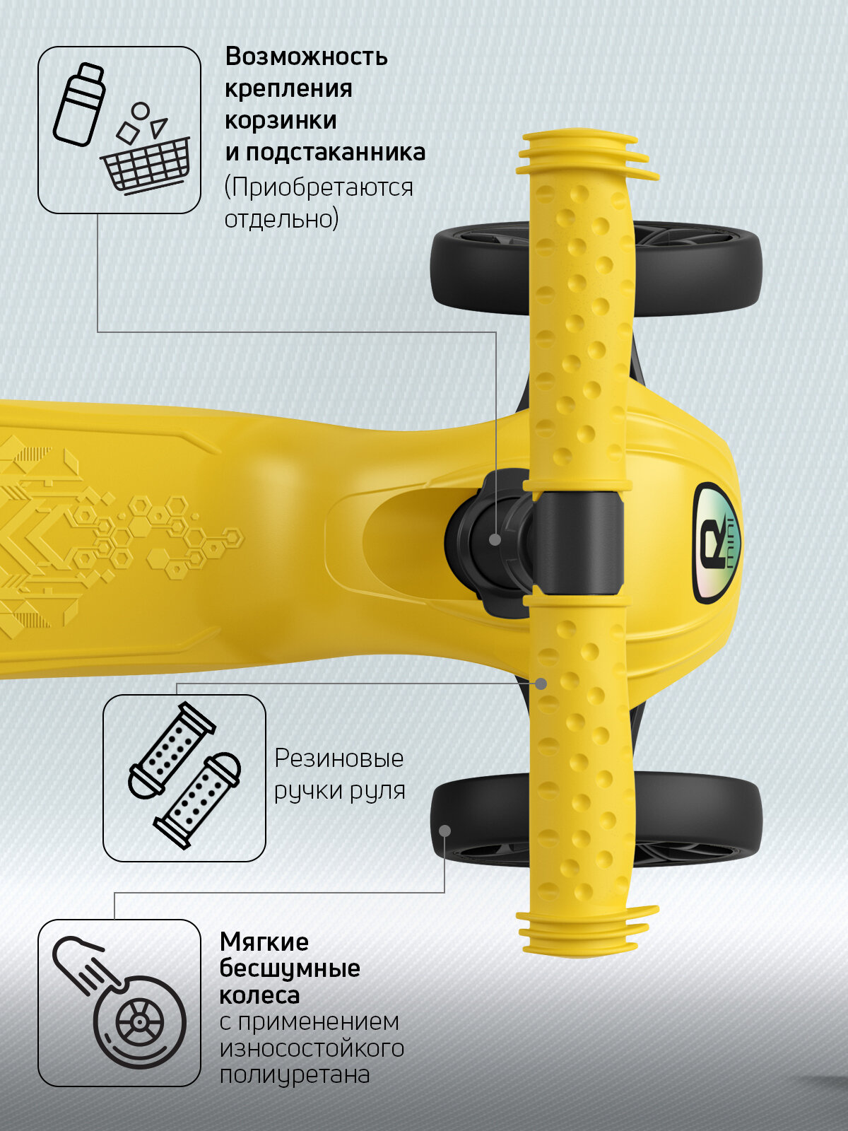 СохранитьСамокат, самокат трехколесный детский, с цветными ручками Buugy Boom Alfa Mini R, желтый интересное: