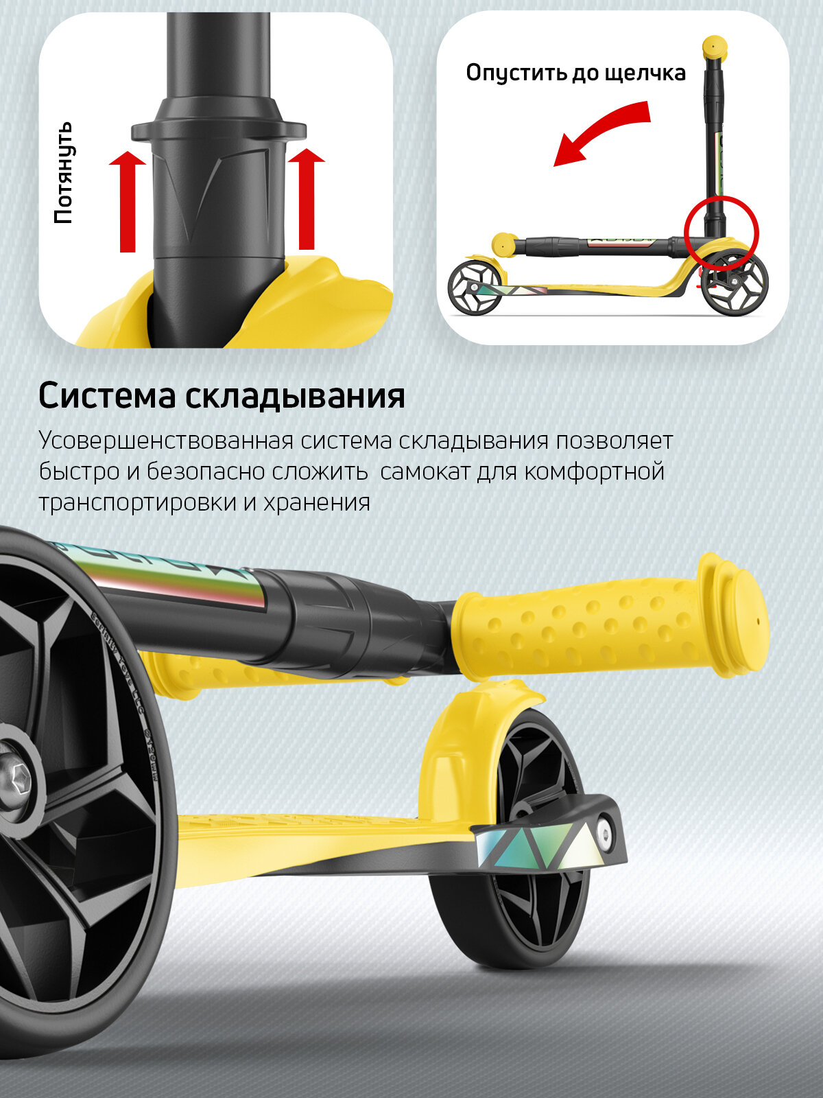 | Конструктивные особенности | регулировка высоты руля / складной |
