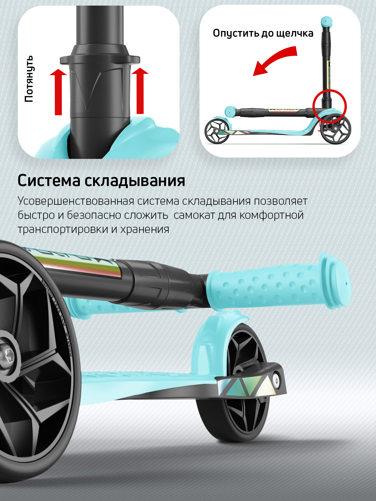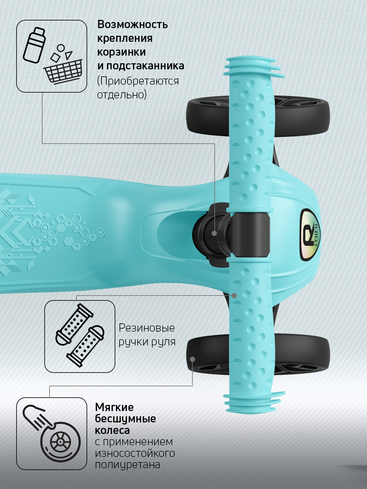 Самокат, самокат трехколесный детский, с цветными ручками Buggy Boom Alfa Mini, бирюзовый