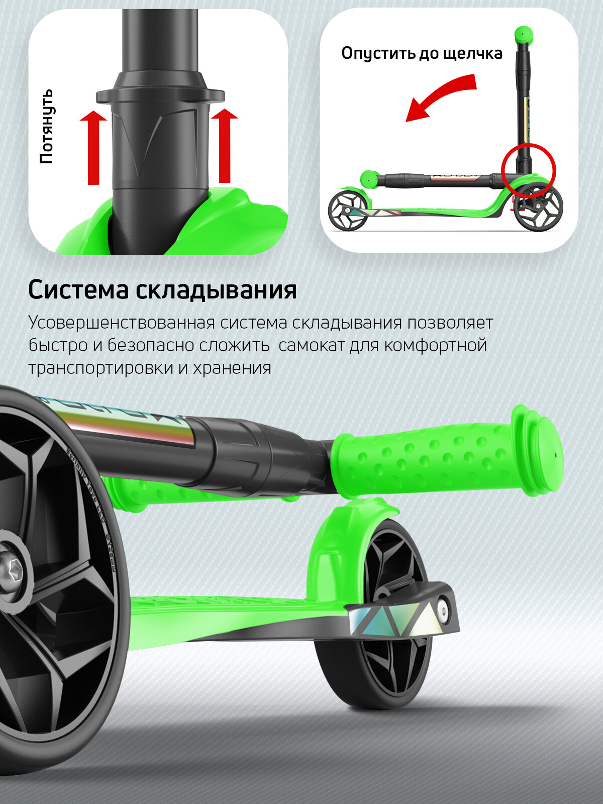 Самокат, самокат трехколесный детский, с цветными ручками Buggy Boom Alfa Mini R, зеленый флюр